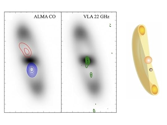 Supplementing the ALMA data with observations at radio frequencies from the Very Large Array, the researchers make the case for a young giant planet or perhaps a brown dwarf present within a 70 AU cavity inside the disk, a zone filled with hot molecular gas. Planetary accretion of an object between 4 and 70 Jupiter masses would produce the disk gap.