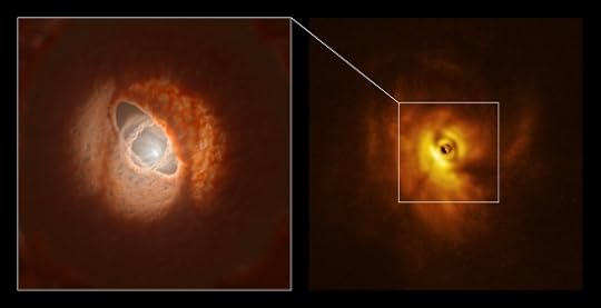 Planets could well emerge here, with the research indicating that the inner ring contains about 30 Earth masses of dust. What’s intriguing is that any planets forming within this inner ring will orbit in a highly oblique fashion at wide separation from the star. Bear in mind that it’s now believed that more than half of the stars in the galaxy are born with one or more companion stars, making for the prospect of a large population of planets on highly inclined, distant orbits.