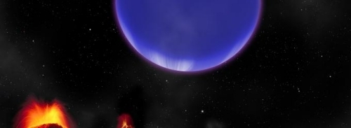 Image: A gas giant planet spanning three times more sky than the Moon as seen from the Earth looms over the molten landscape of Kepler-36b. Credit: Harvard-Smithsonian Center for Astrophysics.