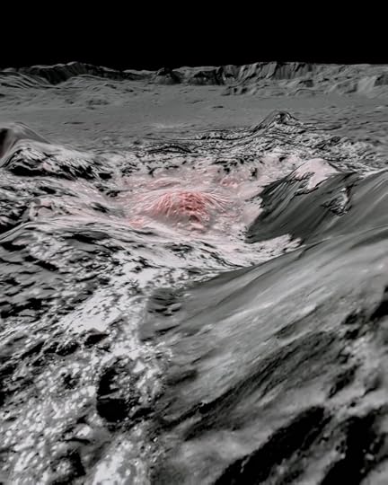But Ceres? Not only is it the only dwarf planet inside Neptune’s orbit, but it’s also the largest of the main belt asteroids. You would think that orbits between Mars and Jupiter, which are obviously not associated with the tidal forces of a closely orbited gas giant, would produce inactive bodies. The Dawn data and the papers it has spawned indicate otherwise. Dawn, studying Ceres from 2015 to 2018, shows us a world of 950 kilometers diameter that is active and possessed of its own form of cryovolcanism. At the core of these studies is Occator Crater, about 92 kilometers in diameter and possessed of a remarkably bright, white coloration.