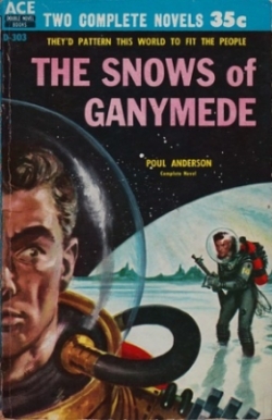 Robert Heinlein’s 1953 novel Farmer in the Sky involves a terraformed and colonized Ganymede, and my personal favorite is Poul Anderson’s The Snows of Ganymede (1954), mostly because it triggers memories of a battered Ace Double, though it’s an otherwise negligible fragment of a great writer’s work. But I’d better stop there — references to the moon in fiction could go on for some time.