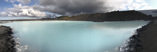 Image: Iceland’s Blue Lagoon, a popular geothermal spa. There is a volcano caldera in the background. Credit: Angelle Tanner.
