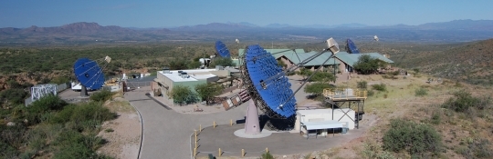 Image: View of the Fred Lawrence Whipple Observatory basecamp and the VERITAS array. Credit: VERITAS.