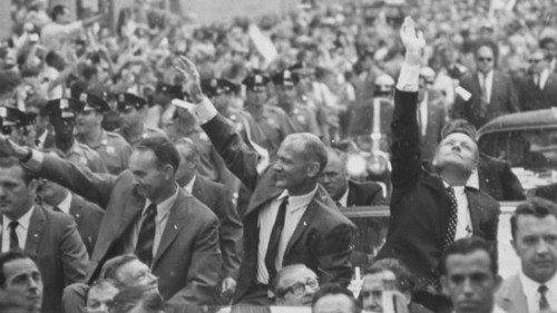 Image: A time like no other: Collins, Aldrin, Armstrong amidst an exultant crowd in August of 1969.