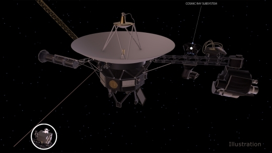 Image: This artist’s concept depicts one of NASA’s Voyager spacecraft, including the location of the cosmic ray subsystem (CRS) instrument. Both Voyagers launched with operating CRS instruments. Credit: NASA/JPL-Caltech.