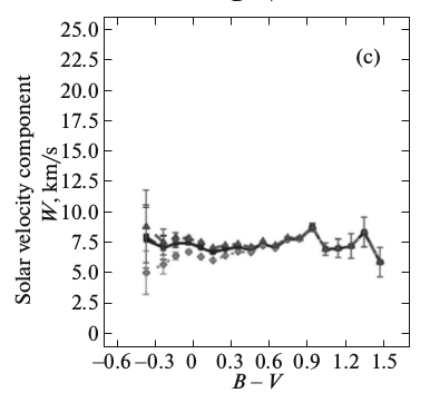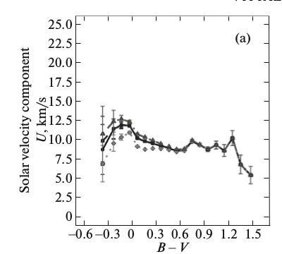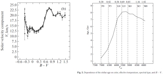 Alex: Given the large numbers of stars in the sample, I was thinking that the stellar type vs velocity relationships could be plotted for locations on the galactic disc. If they are all the same, that would tell a different story than if they differed in shape. There is a hint of this in the Vityazev paper where they plot thin vs thick disk stars that show differences. In other words, given the large sample size, it should be possible to show more granularity based on location than with the averaging that Vityazev computes.