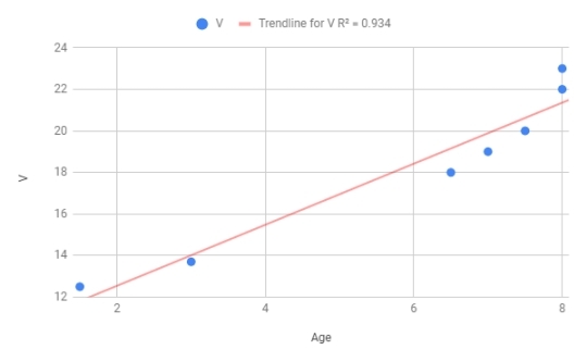 Unfortunately, even if age is the relevant variable, it doesn’t falsify your hypothesis. The mechanism of acquiring a high V might simply require time, whether a natural, external force or an inner, self-directed one. Just as with determining which animals are conscious (e.g. using the mirror test), we need a better test to be able to falsify your hypothesis. We may be in the position of trying to determine sentience of a herd of buffalo from a still photograph when what we need is video or many photographs over time.