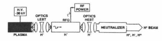 Figure 1 Block diagram of early neutral particle beam generator [1]. Drift-Tube Linac is not shown.