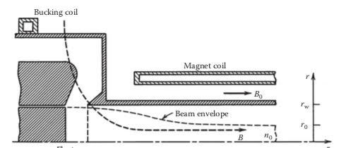 Figure 2. Ion beam on left is propagated along converging magnetic field to the linac.