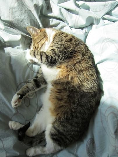 Wow. This week has been HOT here in Vermont. My husband has been at a conference in San Diego while my son and I have been practicing hot weather survival skills on ourselves and our cats. Here is Fred, getting his tummy cooled off: