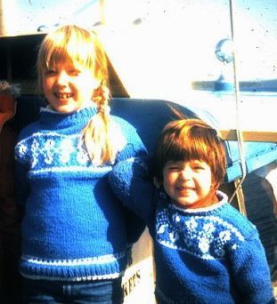 I want to apologize to my mom right now. Because she made these sweaters. One for my brother, one for me, and one for my sister. She did a great job! I cannot knit to save my life. And there's even a pattern! Looking at them now, they're really quite cute.