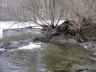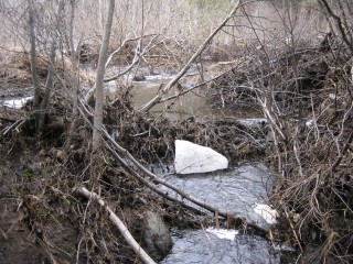 Sometime in the night, the beaver dam broke on our neighbor's property. It burst through to our pond and wrecked what was left of our own dam, flooding our lawn briefly, before sweeping down the stream and wreaking havoc all down the road.