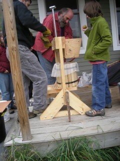 Yesterday we went to our friends' house with five bags of apples from our old tree. There, we were met by Gryfe, watcher of the cider press.