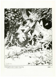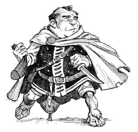 Also in my Illustration Mines of Moria, I discovered some pen & ink drawings of D&D (ahem) "halflings" that were done for player-character sheets that I sold back in my gaming-art days. As mentioned before, my halfings were inspired by the hobbits of my childhood, though I also realized there was a bit of Frank Frazetta in there, especially from his "Lord of the Rings" portfolio released in 1975.