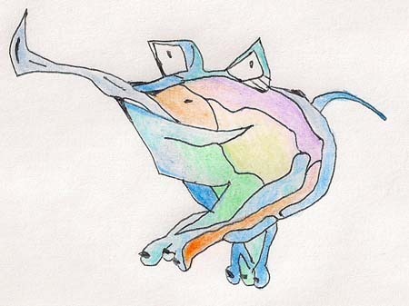 Thirteen year-old Tobias from Argentina tells me he likes to draw a lot. He sent Ang and I a bunch of drawings including a "Strange Bird" and a "Colorful Mini-Elephant". (My fav is that Jules Feiffer-esque critter up on the top.)