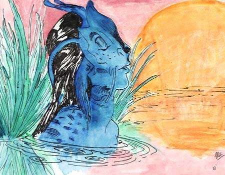 This week we have some lovely pen and ink renditions of a nixie and a mermaid from Mason.