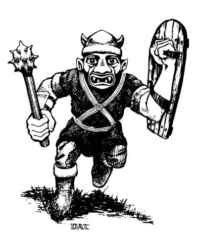 Recognize the pose? You old timers will, it's after David Trampier's goblin done for the AD&D Monster Manual back when boomboxes and Rubik's cubes ruled. And as many remember, the enigmatic Trampier simply signed his work DAT.
