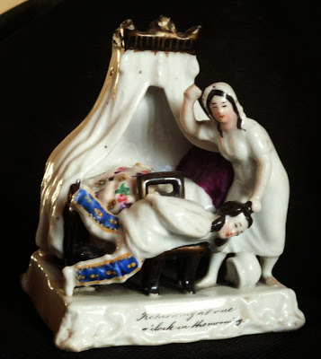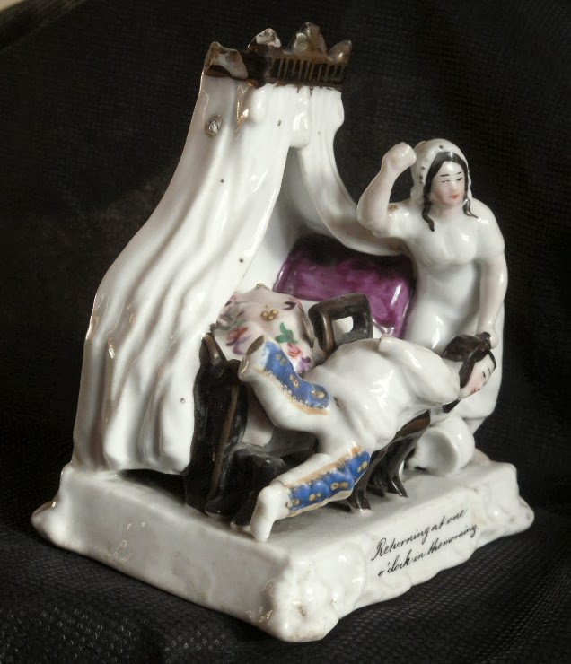The husband's kicking foot has been broken off, and whatever the woman was beating him with - a slipper? a rolling pin? frying pan? - has also disappeared. Although it's an antique, I don't need to be told that it isn't worth anything.