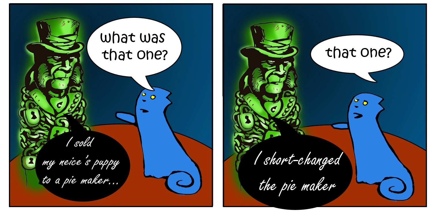 Spirit: I sold my neice's puppy to a pie-maker // I short-changed the pie-maker
