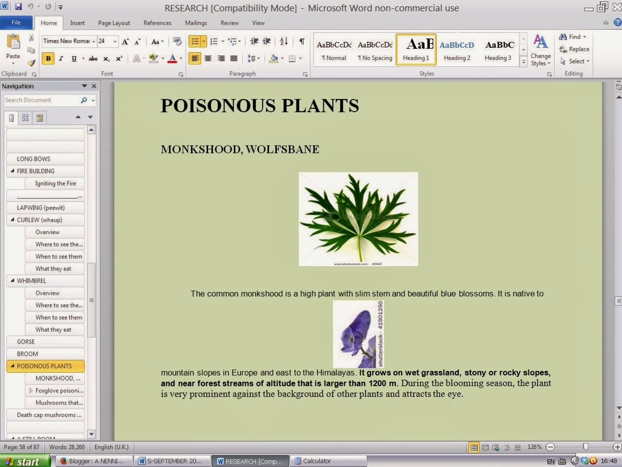I wanted to have notes on several poisonous plants: Monkshood, Foxglove, Henbane - and then another section on poisonous mushrooms.