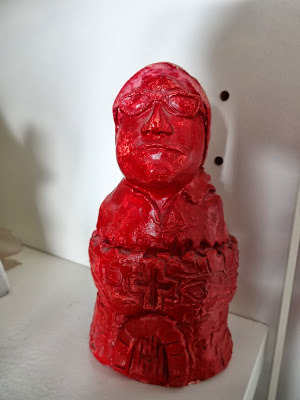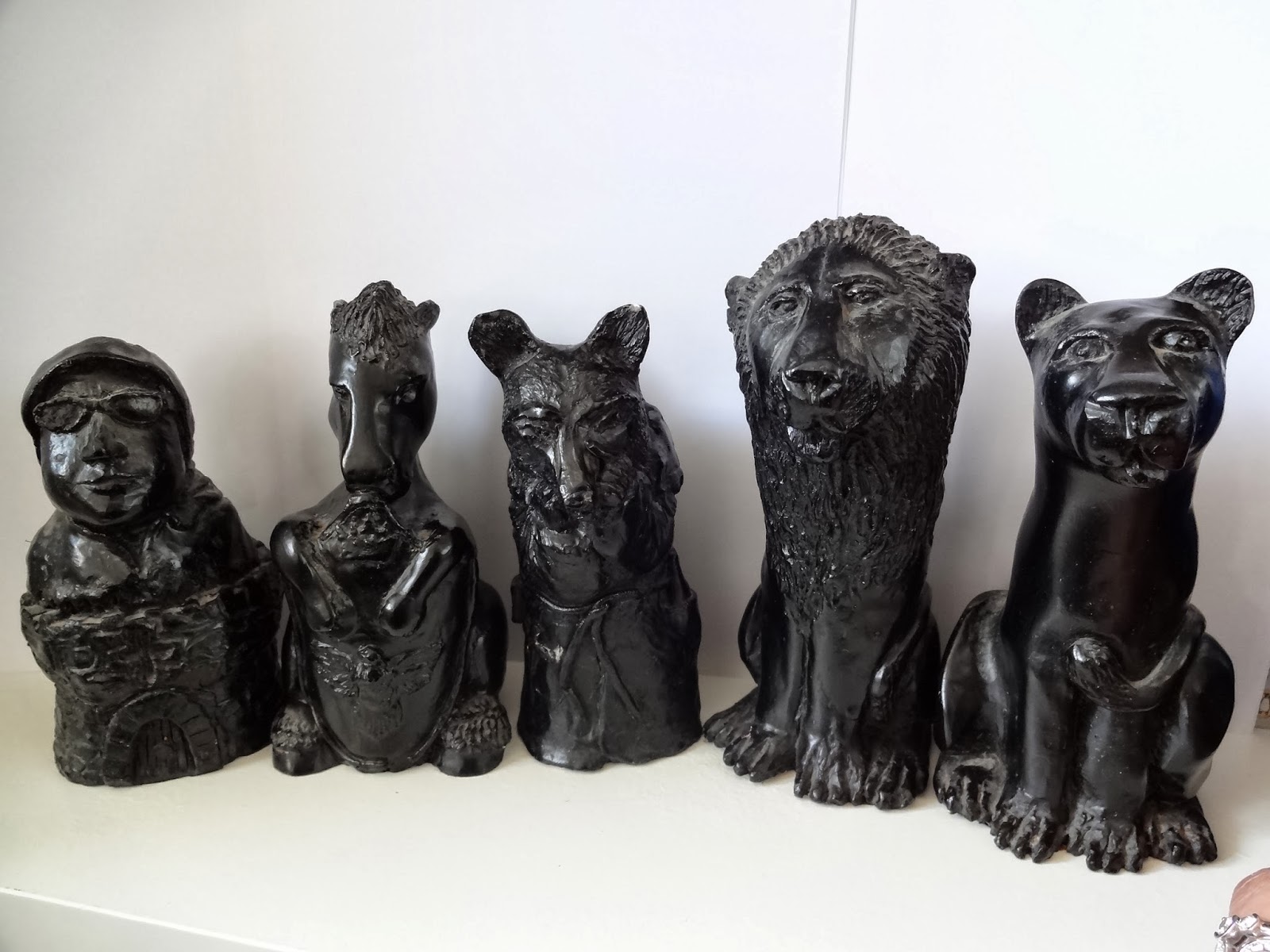 They live with my younger brother now, which is apt, as Adam is as likely to carve or model as he is to draw or paint. He always was. I remember, when he was four, he carried a lump of plasticine around with him all the time, and once showed me a model he'd made of our budgie. It wasn't the stereotypical 'bird-shape' I expected, but an acutely observed replica of a budgie. The flattened face, the long tail - umistakeably a budgie.