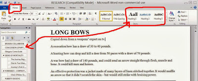 Or, I can click on any of the other Navigation headings - no matter what size they are - and I will be taken straight to that point in the file. I have notes - and Navigation Pane Headings - on medieval kitchens, still rooms, modern radio communications, sting grenades... and on and on.