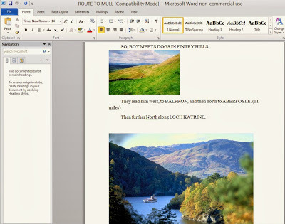 I think I might take a pointer from Scrivener, though, and set up 'Character' files in my research folders in future, with images and notes. I'll do the same for 'Locations'. Though I did do something similar for my Drovers' Dogs story, where the boy follows a drovers' route from the Fintry Hills to Mull.