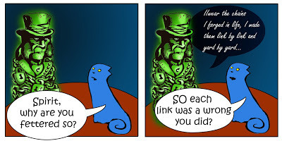Spirit: These are the chains I forged in life. I made them link by lik and yard by yard....