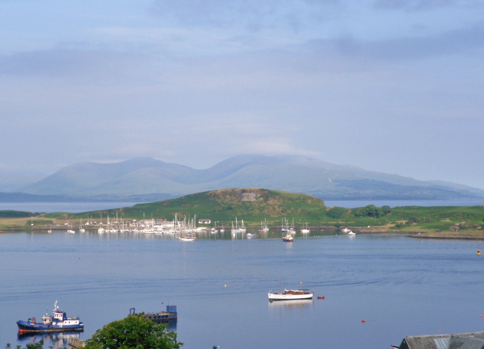 The green island in the foreground is Kerrara, which safeguards Oban's harbour.Rising up behind it are the mountains of Mull. It's quite hard to imagine Oban as it would have been at the turn of the 18th-19th century. The whisky distillery - one of the oldest - would have been there, and the castle, obviously. Over on Mull, we visited Grass Point, which is where the cattle and drovers left the island. The cattle were taken by boat over to Kerrara, walked the length of this small island, and then swum across the narrow strait to Oban. We tried to pin-point where this was, and decided that it must have been near where the castle stands.
