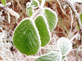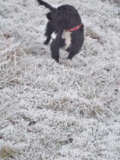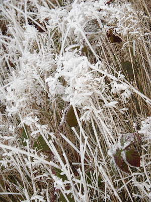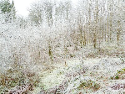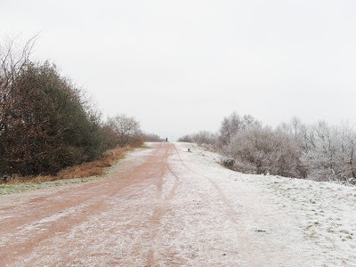 The top of the hill. It was cold up there! The trees and grass to the right were all coated with ice, but to the right, ice-free.