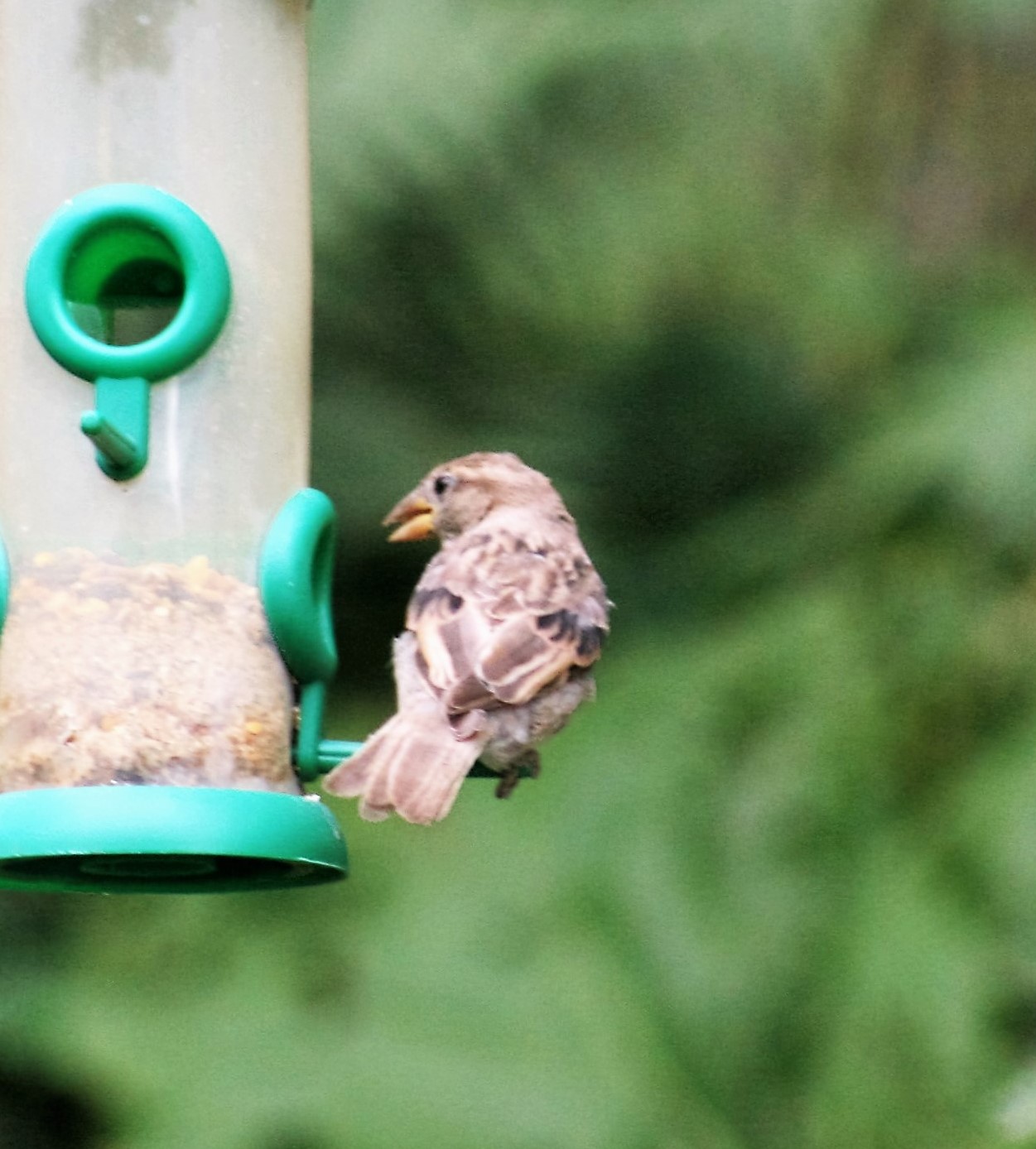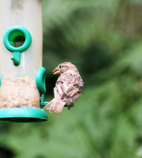 The of starlings come in gangs of five and seven, with wicked beaks like stilettos, and frantically fight to get into small hanging bird tables and squabble with the sparrows over the spaces on the feeders. Or they plummet down and raid the ground-feeder.