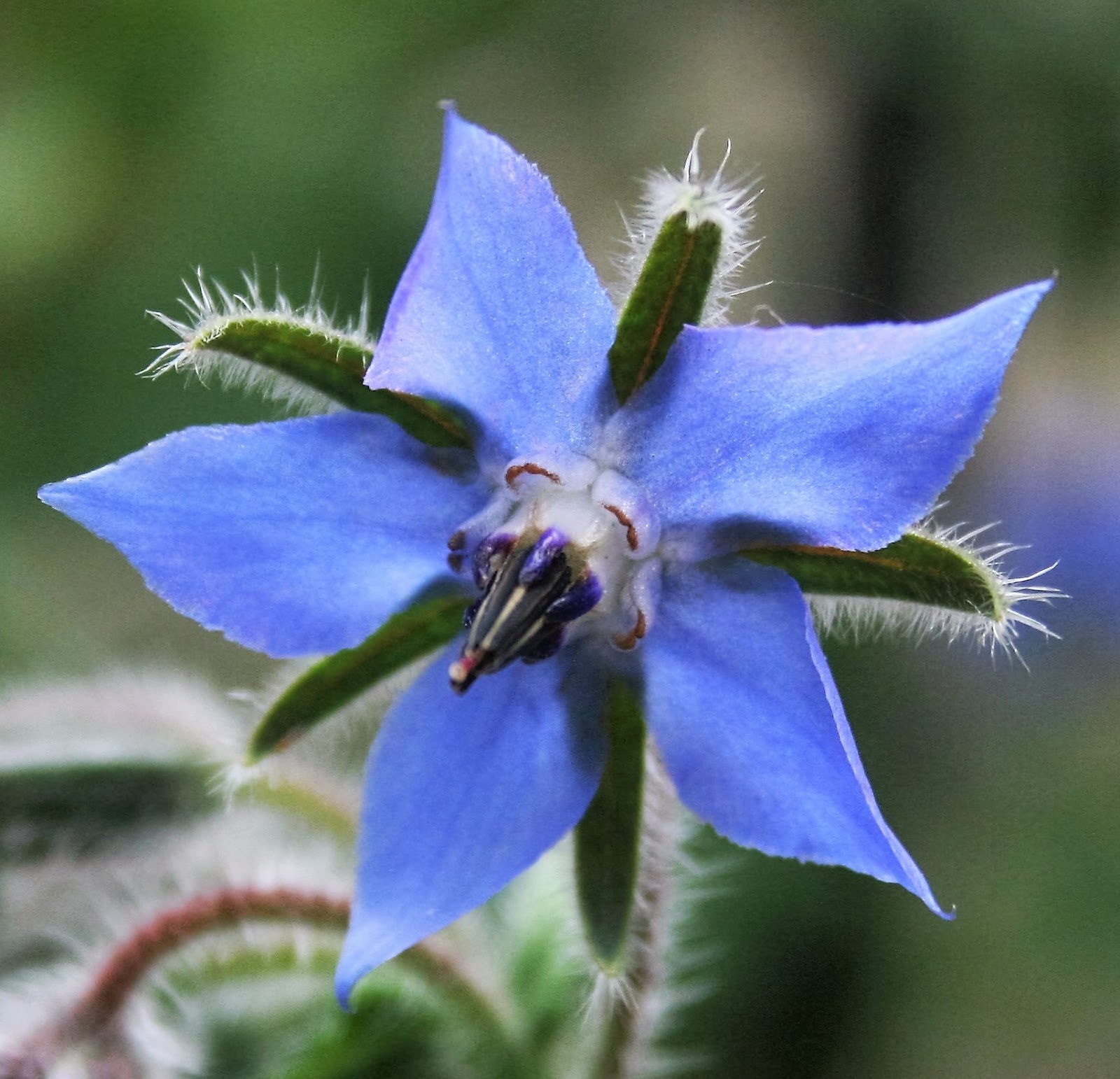 That beautiful blue star is a borage flower. I wanted a borage because bees love them, and my mother grew them. They self-seeded everywhere and the garden was blue and starry for years.