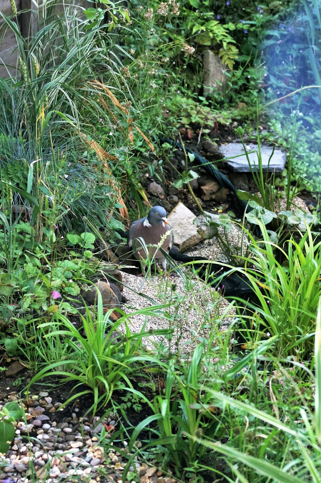 We've got used to the fact that the birds resent our presence in the garden. If we linger over tasks, they crowd the trees and yell at us. If we persist, they drop down to slightly nearer branches and yell louder. I've come to recognise the peculiar whistling whoop that starlings make and the craak-craak-craak of magpies. The moment we step back inside the house, they come down to the pond and feeders in flocks before we can pull the door shut.