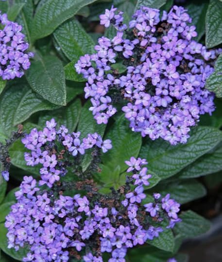 A pot of cherry-pie by my kitchen door has been attracting bees as big as my thumb - but none stayed around to have their picture taken.