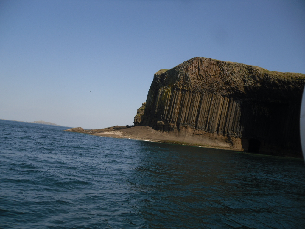 Instead of reflecting the cliff, the sea slapped against it and streaks of orange sand could be seen in the water.