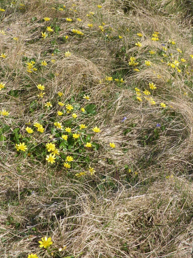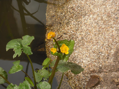 The marsh-marigold in the pond. There is a large bud on one of the water-lilies but it's taking an age to open.