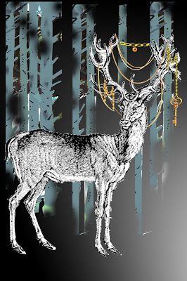 Why a stag? And why one bedecked in gold chains? - If, waking, I'd been asked to predict what animal would appear in this half-dream, I'd have said, a cat. Maybe a dog. If pushed to be a bit more dramatic, I might have said, 'A wolf,' since I've several times written about wolves. But never a stag with gold hanging from its antlers