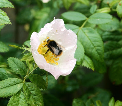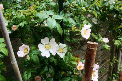The dog roses which grow through my neighbour's fence. They have a short flowering season, but I look forward to them for their lovely simplicity. I think I prefer them to garden roses.
