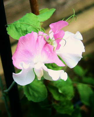 Close by the roses, we have sweet-peas - which family legend says were my Grandfather Price's favourite flower. Their scent is also heady.