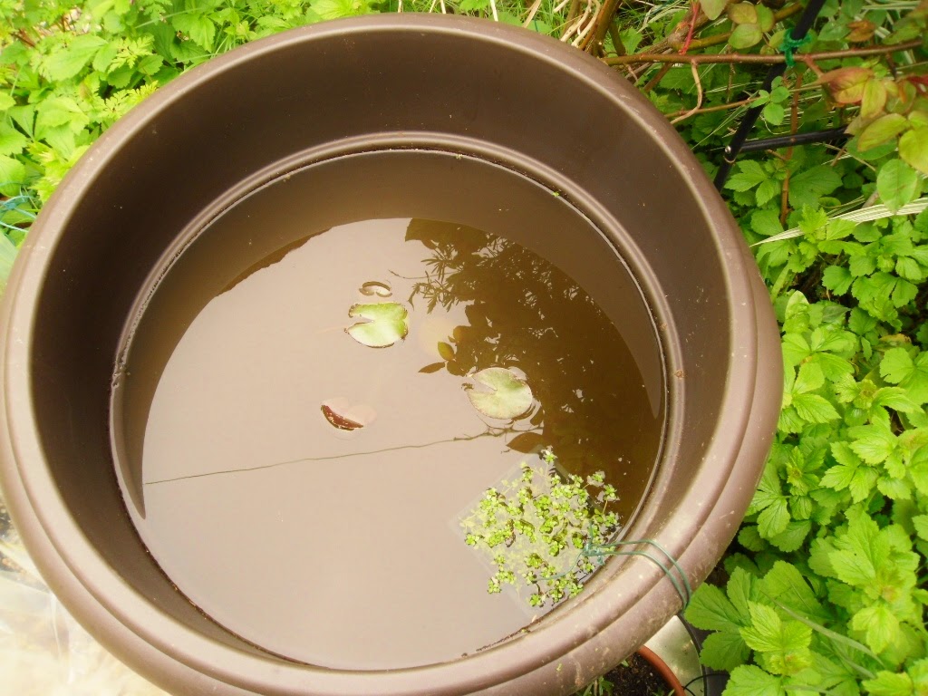 Pond in a pot See that big black pot at the edge of the gravel? That's my garden pond, viewed from my kitchen door. I don't often watch gardening programmes, but when I do, I quite often get up to something as a result. It's probably just as well I don't watch them very often. I caught Diarmuid Gavin telling the nation that the single most effective thing you can do, to increase wildlife in your garden, is make a pond. You don't even have to dig a hole. You can put the pond in a pot.