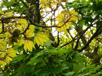 You could see the leaves turning from their true colour of red to green, as they start to produce cholorphyll.