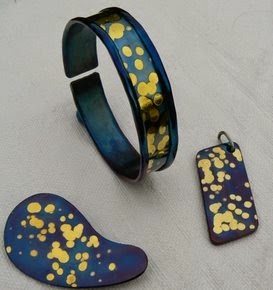 I really like the look of this 'random' jewellery, made of steel with brass inlay.