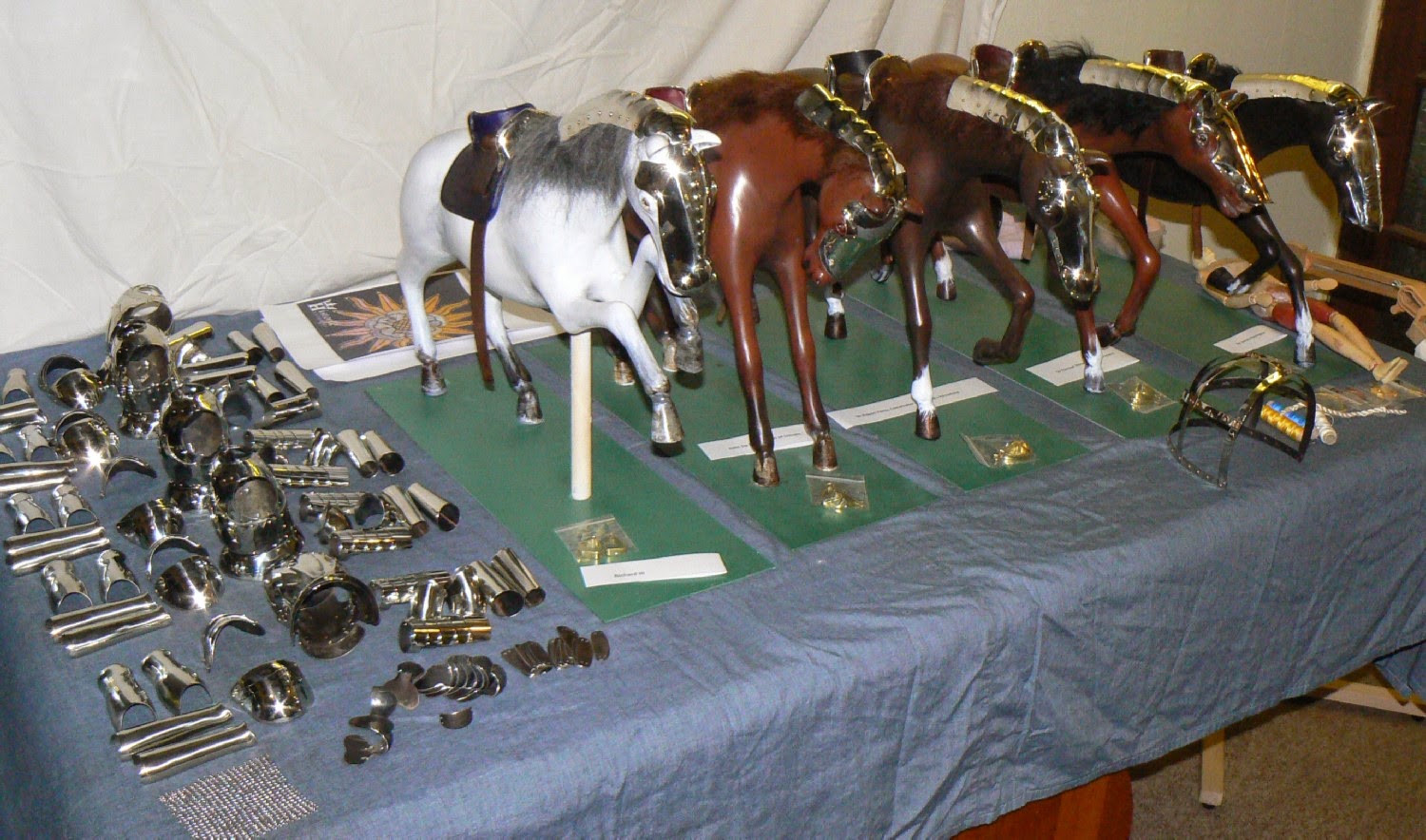 Here, below, you have a somewhat better view of the tiny helmets, breastplates, greavcs and other body armour laid out beside the horses, ready for the knights.