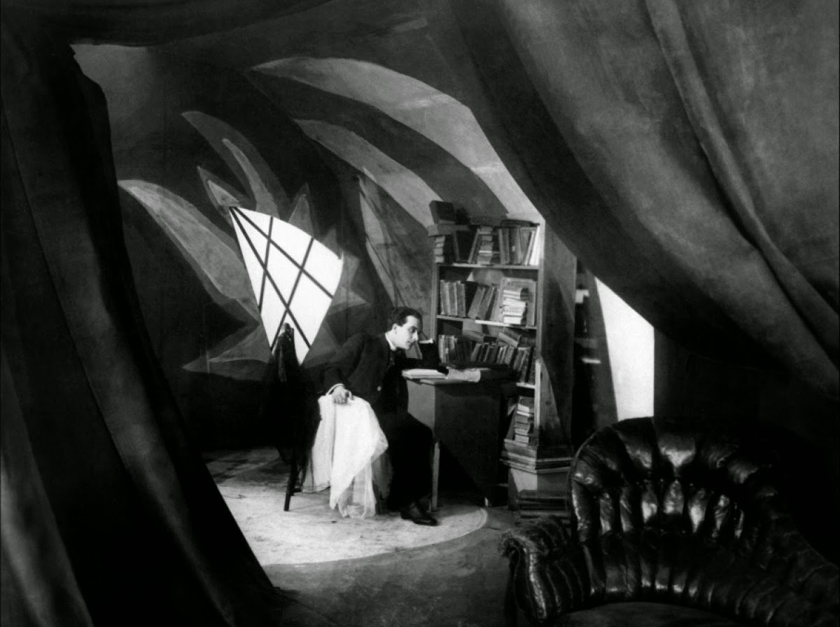 As I read, certain images kept coming into my mind, all drawn from ‘The Cabinet of Dr. Caligari,’ with its strange, skewed perspectives.“As I came round the bend of the road an extraordinary spectacle was presented to me. About a hundred yards away on the left-hand side was a house which astonished me. It looked as if it were painted like an advertisement on a board on the roadside and indeed very poorly painted. It looked completely false and unconvincing. It did not seem to have any depth or breadth and looked as if it would not deceive a child… What bewildered me was the sure knowledge deeply rooted in my mind that this was the house I was searching for… I had never seen with my eyes ever in my life before anything so unnatural and appalling and my gaze faltered about the thing uncomprehendingly as if at least one of the customary dimensions was missing, leaving no meaning in the remainder. The appearance of the house was the greatest surprise I had encountered since I had seen the old man in the chair and I felt afraid of it.”