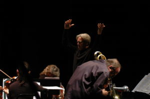 These late songs of Schubert are dark, mysterious, brooding, full of despair. “Der Doppelgänger,” for example, depicts a man who has ventured to the former home of his beloved and is stunned and terrified to find his double standing there, revealed in the moonlight, staring up at the house and the sky. It’s an eerie enough work in its original setting, yet when Taylor seemingly improvised the solo line on the bass trombone, he transformed the familiar into something strange, still plangent and bewitching, but now uttered by a voice from another world—guttural, stuttering, flutter-tongued. With the orchestral accompaniment playing a steady, mesmeric dirge, the pathos was unrelenting, almost too much to bear. How had Taylor done it? I wondered. How had he conjured up a hazy, ghostly double of this moody Schubert lied? Later in the show, Taylor played “Der Doppelgänger” again, this time in a more extroverted, virtuosic manner. The same notes, but a completely different effect—the idiom more indebted to bebop and jazz, the orchestra sounding almost Brucknerian by contrast.