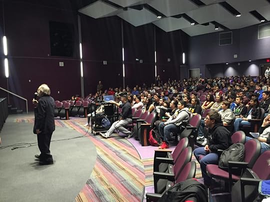 You’re looking at a photo of me – the old guy with the beard – being thanked by students at East Lake High School, a semi-rural public high school on the outskirts of El Paso, Texas. Five hundred East Lake students had just spent 90 minutes watching and listening to a presentation sampling Redes (1935) – the iconic film of the Mexican Revolution, a tale of exploited fishermen who unite and revolt.