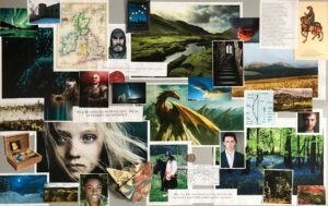 One of my story vision boards – the largest picture is my character.
