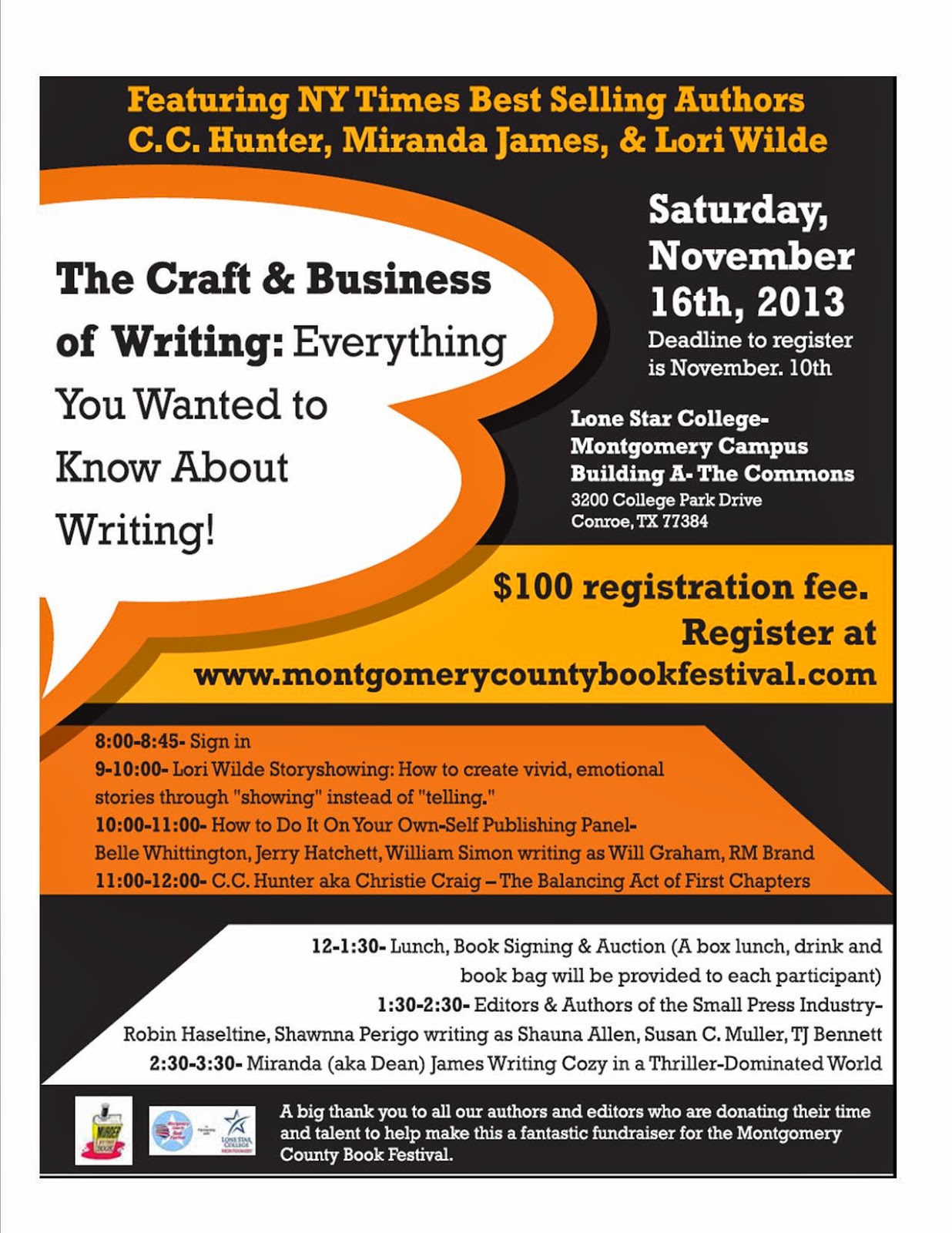 This year, in order to host the Festival again, the librarians who sponsor it are offering a Writer’s Workshop Fundraiser, with bestselling authors providing a day of outstanding content (and donating their time!) for the low, low fee of $100.