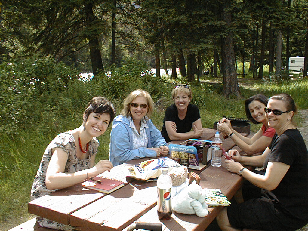 Bailey Jorgensen, Sandra Brug, me, Kiri Jorgensen, Maurene Hinds (Elaine Alphin behind the camera) on our way to our retreat.