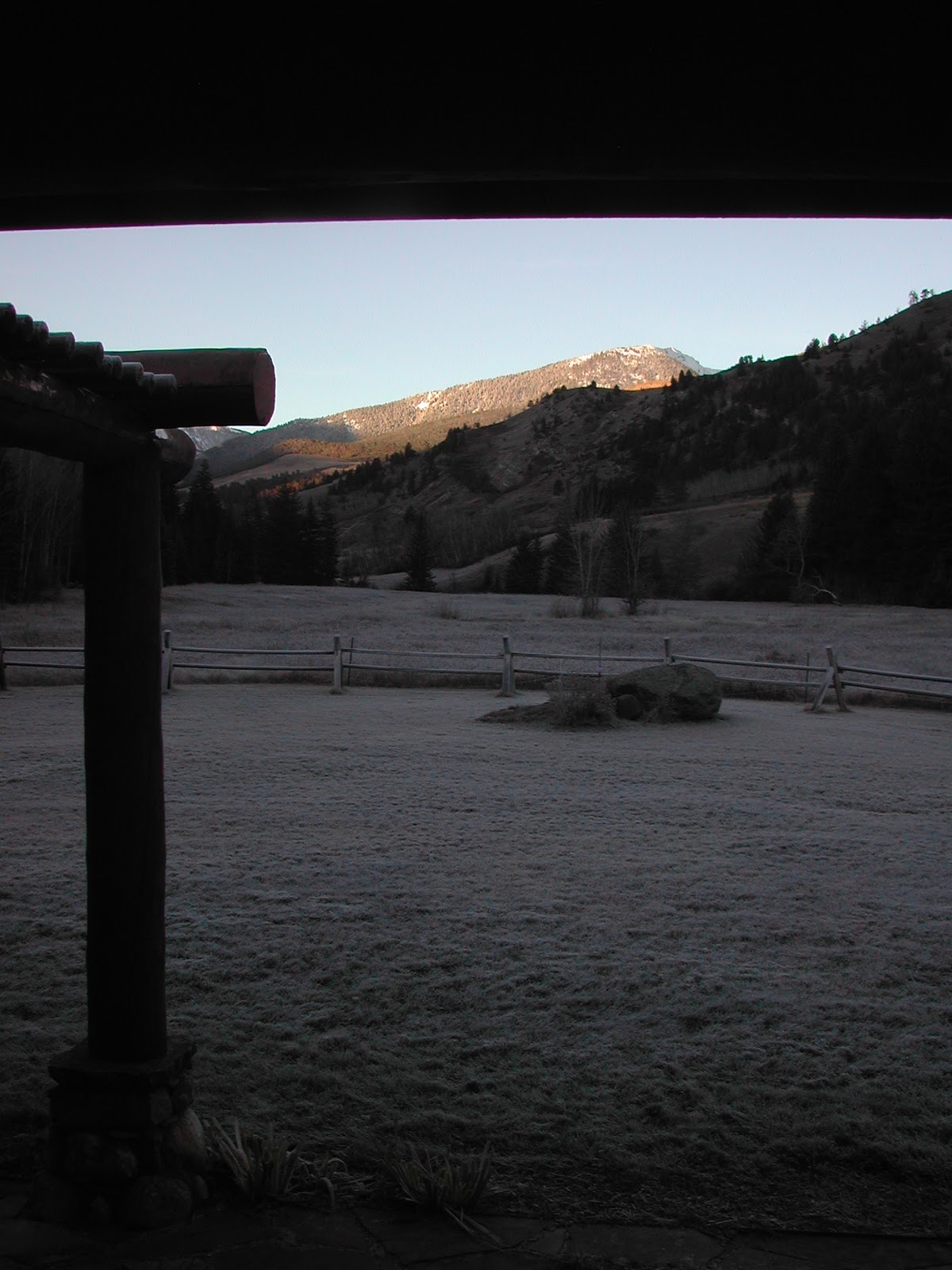 On a final note, just because, a pic I snapped the day before we left Montana: a frosty dawn (yes, that's frost on the lawn) out our front window.